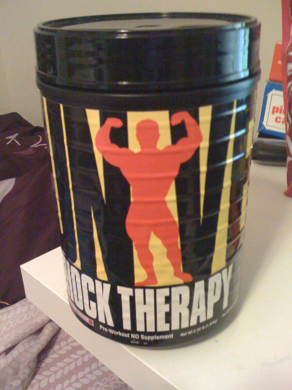 In addition to smarter nutrition, I have added a supplement or three into my diet. I consume a daily vitamin as well as 3,000 mg of fish oil. I have added to my breakfast and post-workout protein shakes. In early July, I added a pre-workout NO supplementary shake called Shock Therapy by Universal Nutrition, the company who sells the notoriously difficult to consume, 20+ pill Animal Pak daily multi-vitamins. Thankfully, this is a little easier to consume. It is a powder that you mix with 8-12 oz. of water and it tastes pretty delicious actually. I would compare it to Hawaiian Punch, only a little less sweet. It’s got a lot of Vitamins C, B6, and B12 and some other funky stuff that promises nitric oxide boosts (the stuff that widens your blood vessels and increases blood flow, give you extra blood flow to the muscles while exercising), antioxidants, and increased focus, drive, and gym intensity. Among other things, it has a moderate level of caffeine. The packaging suggests consumption within 30 minutes of working out. The gym is about 10 minutes away, so I usually mix it up before I leave, sync the iPod, and head out.