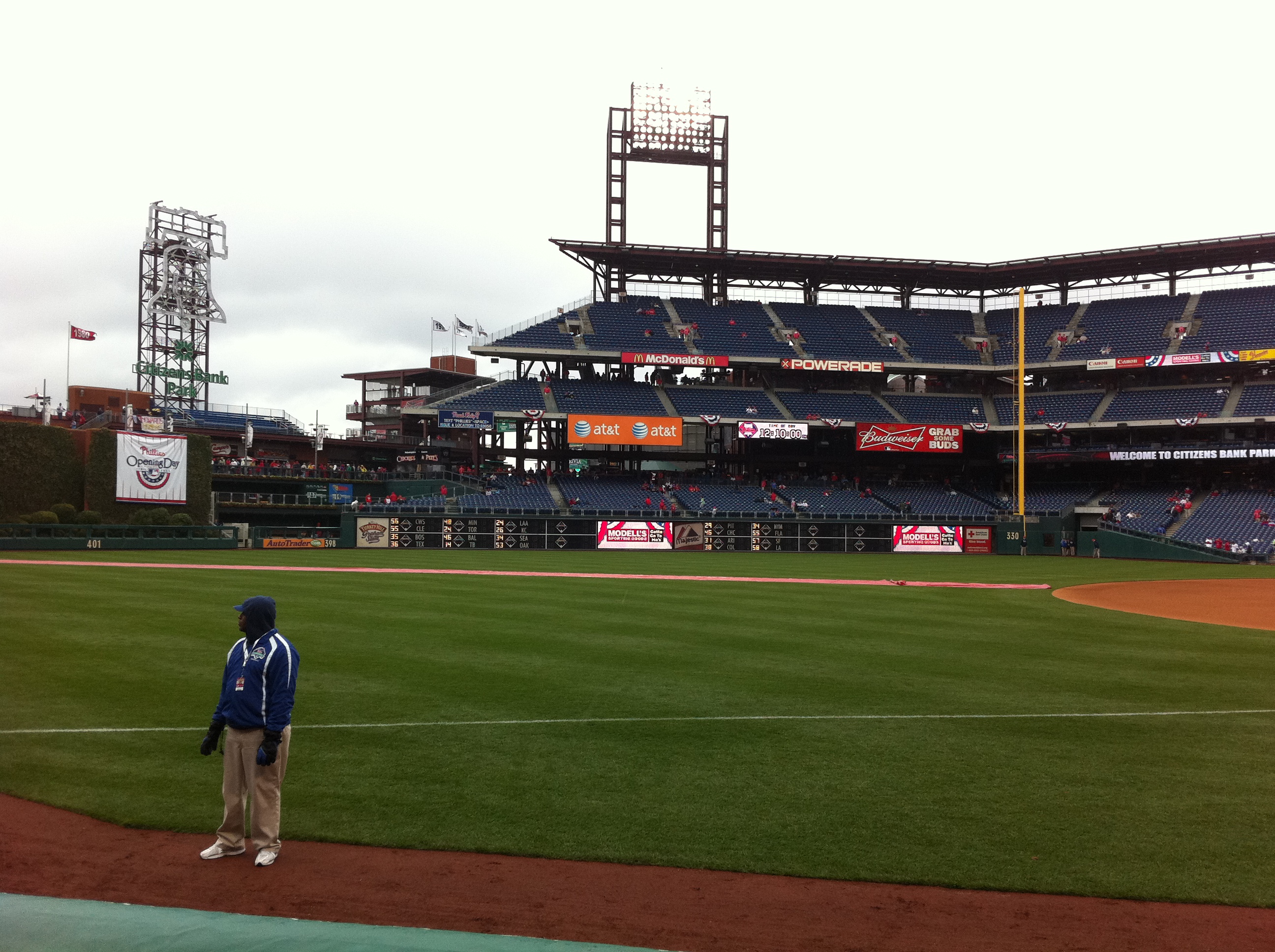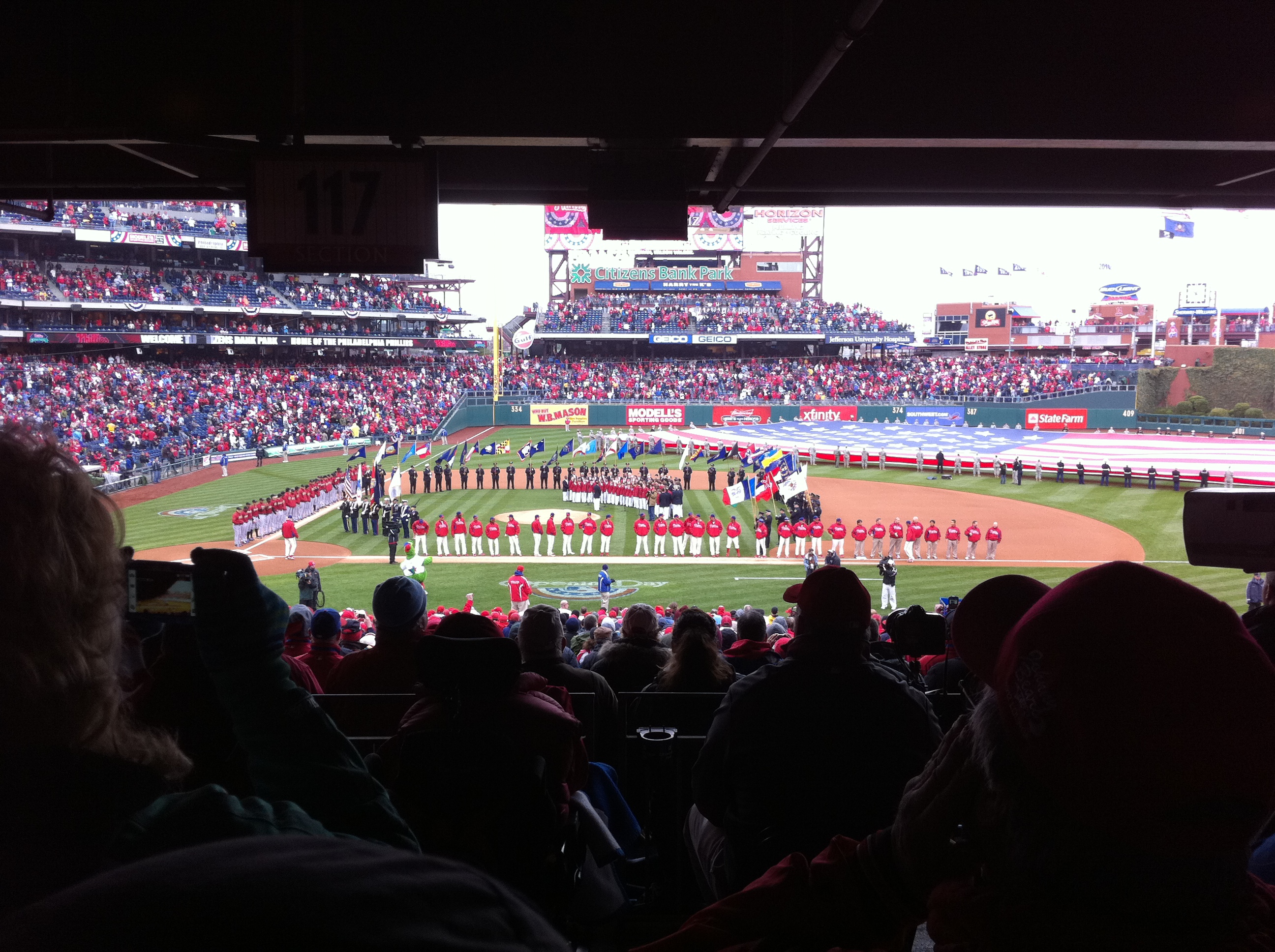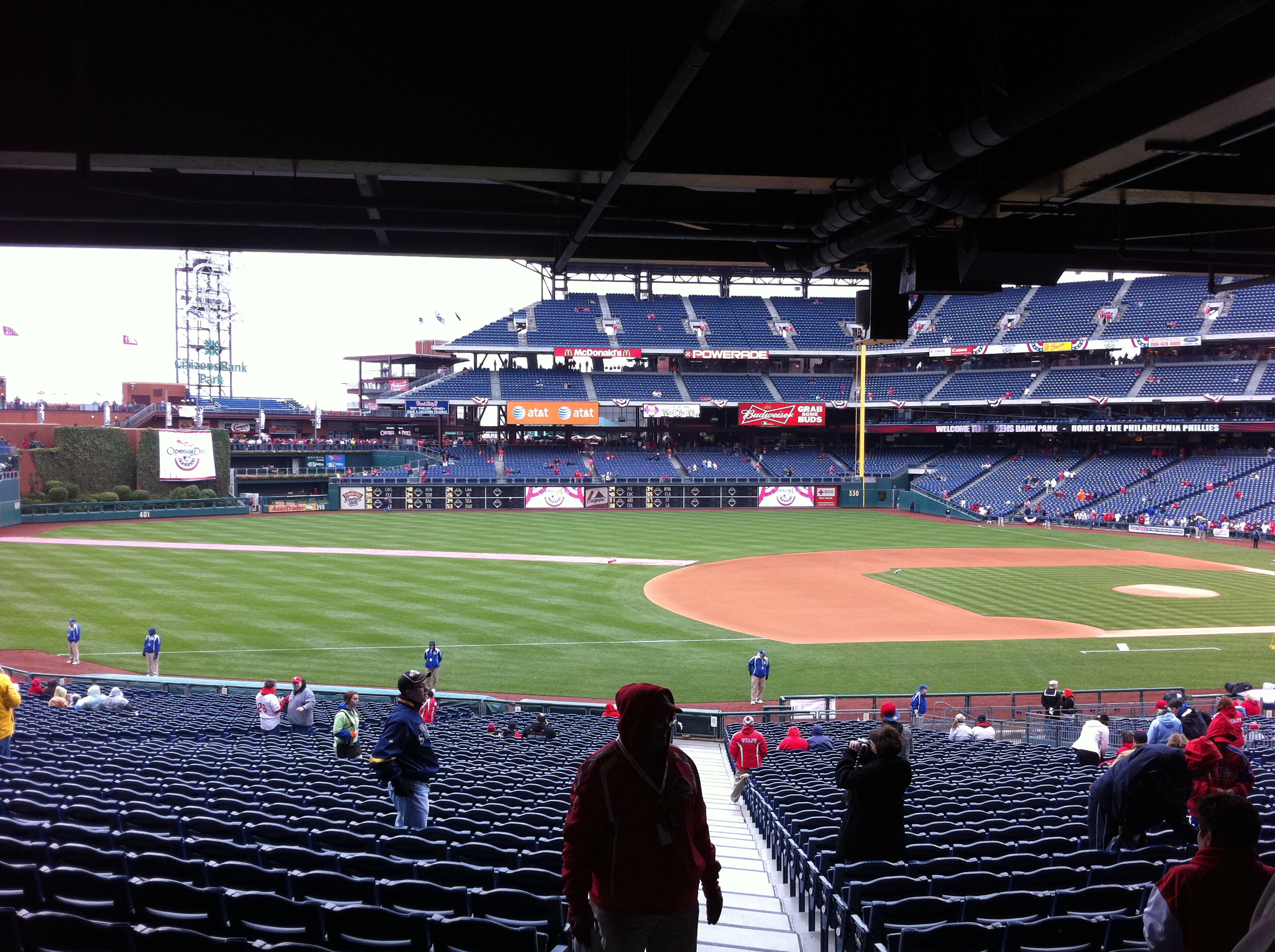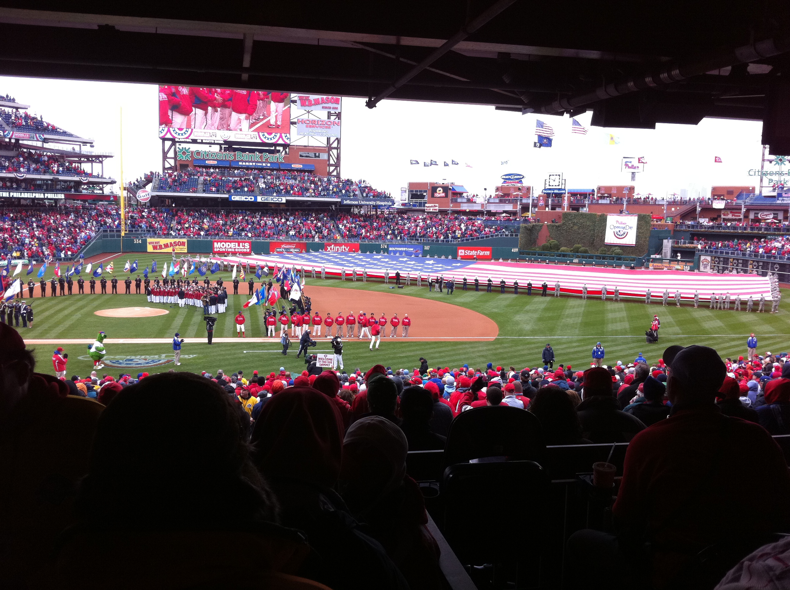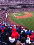 As you know by now, the Phillies’ won today’s game 5-4 over the Astros on John Mayberry Jr.’s walk-off, RBI single. Here are some pics from my brother and I’s first ever Opening Day!