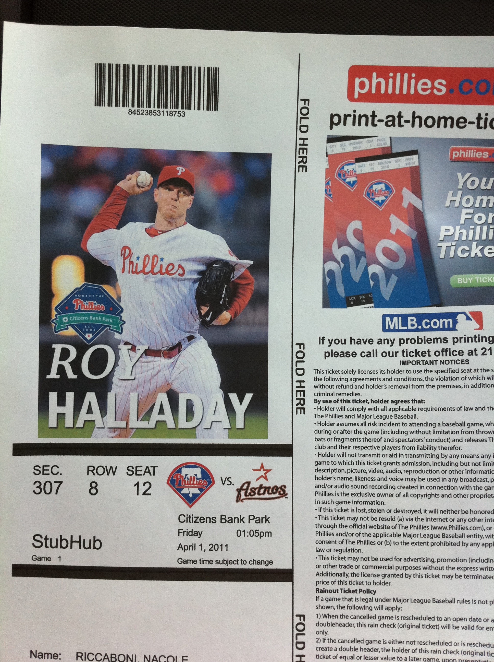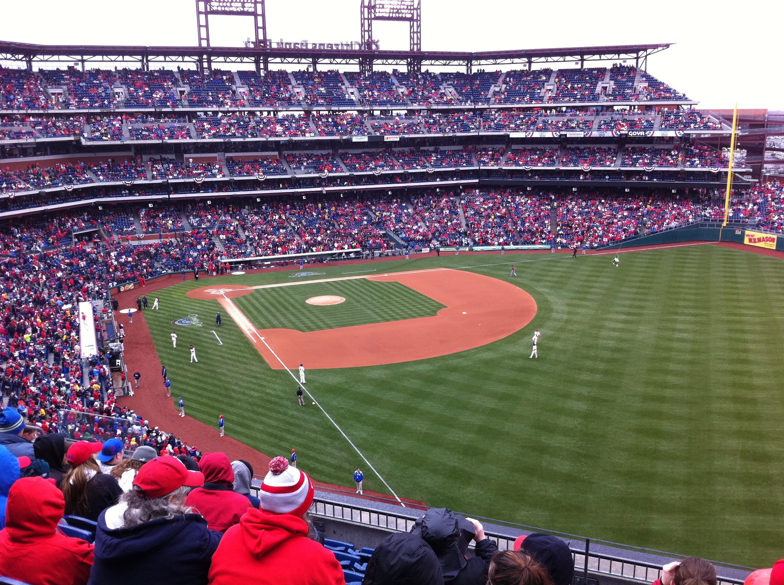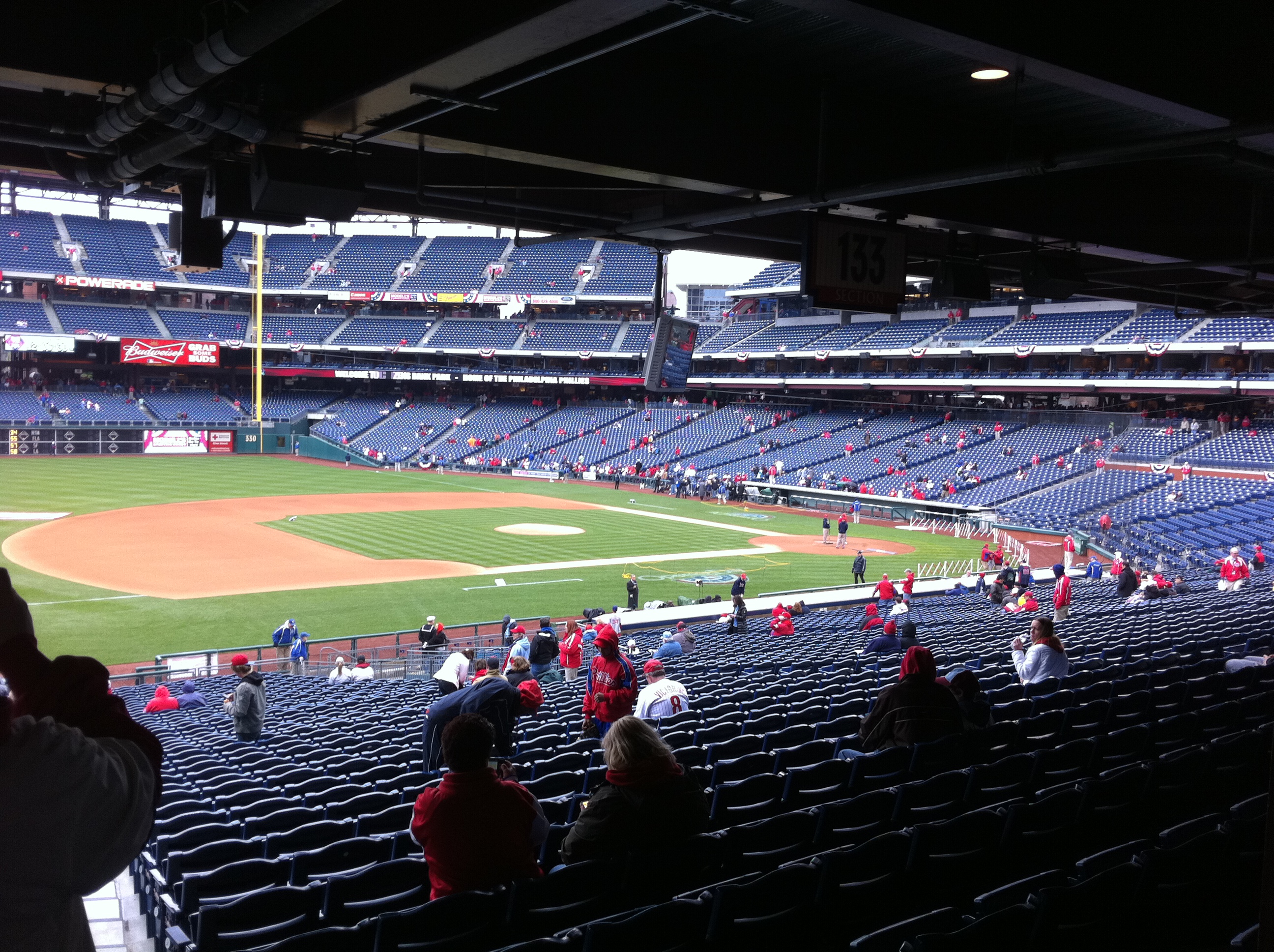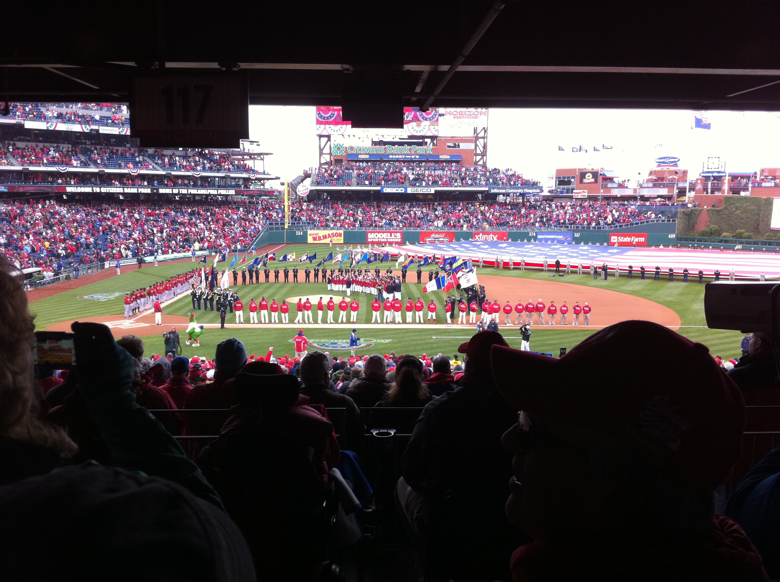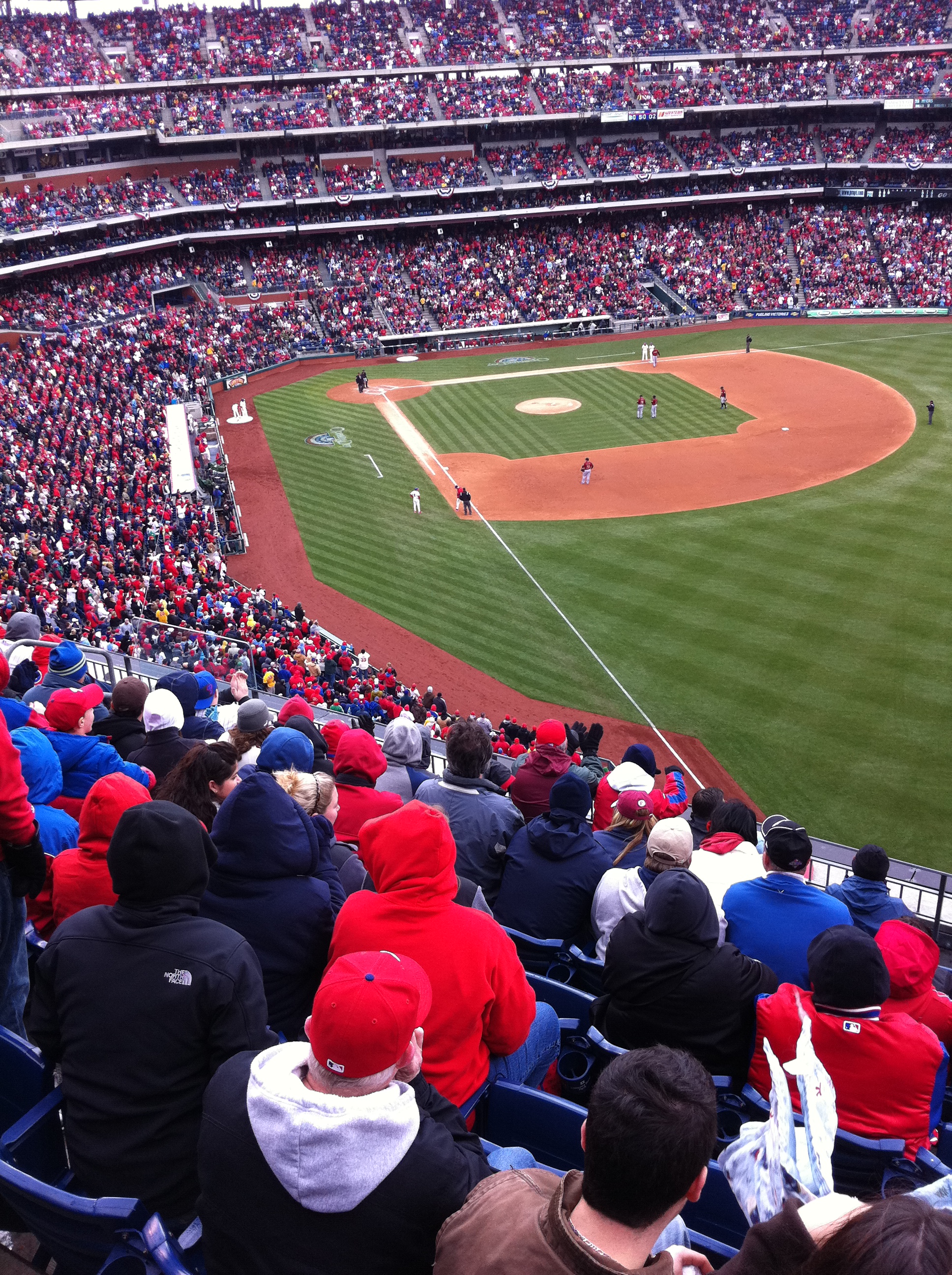 As you know by now, the Phillies’ won today’s game 5-4 over the Astros on John Mayberry Jr.’s walk-off, RBI single. Here are some pics from my brother and I’s first ever Opening Day!