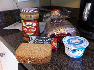 You will also notice in the photo the Arnold’s whole grain bread and natural peanut butter. I highly endorse Arnold’s bread; their is only 110 calories per slice and carbs and simple sugars are lower than most breads. Arnold’s has a wide variety of breads that are similarly delicious, including double protein and double fiber options, but their whole grain option fits directly in the middle of double protein and double fiber: 5 grams of protein per slice and 4 grams of fiber. Two slices to make a sandwhch makes it 220 calories of bread but 10 grams of protein and 8 grams of fiber for only 8 grams of sugar. I also endorse Arnold’s because it is filled with whole grains and it doesn’t contain high fructose corn syrup (HFCS), which Princeton and others have concluded is processed differently than other sugars by the body and significantly increases the likelihood for body fat to be produced. When eating clean and doing high levels of aerobic exercise, the goal is to make as much muscle as visible as possible. HFCS can contain up to 80% fructose while table sugar only contains about 50%; the increase in fructose can contribute to an increase in obesity and insulin resistance. With HFCS in just about everything, I’m glad I’m able to purchase Arnold’s who has a commitment to avoid using it.